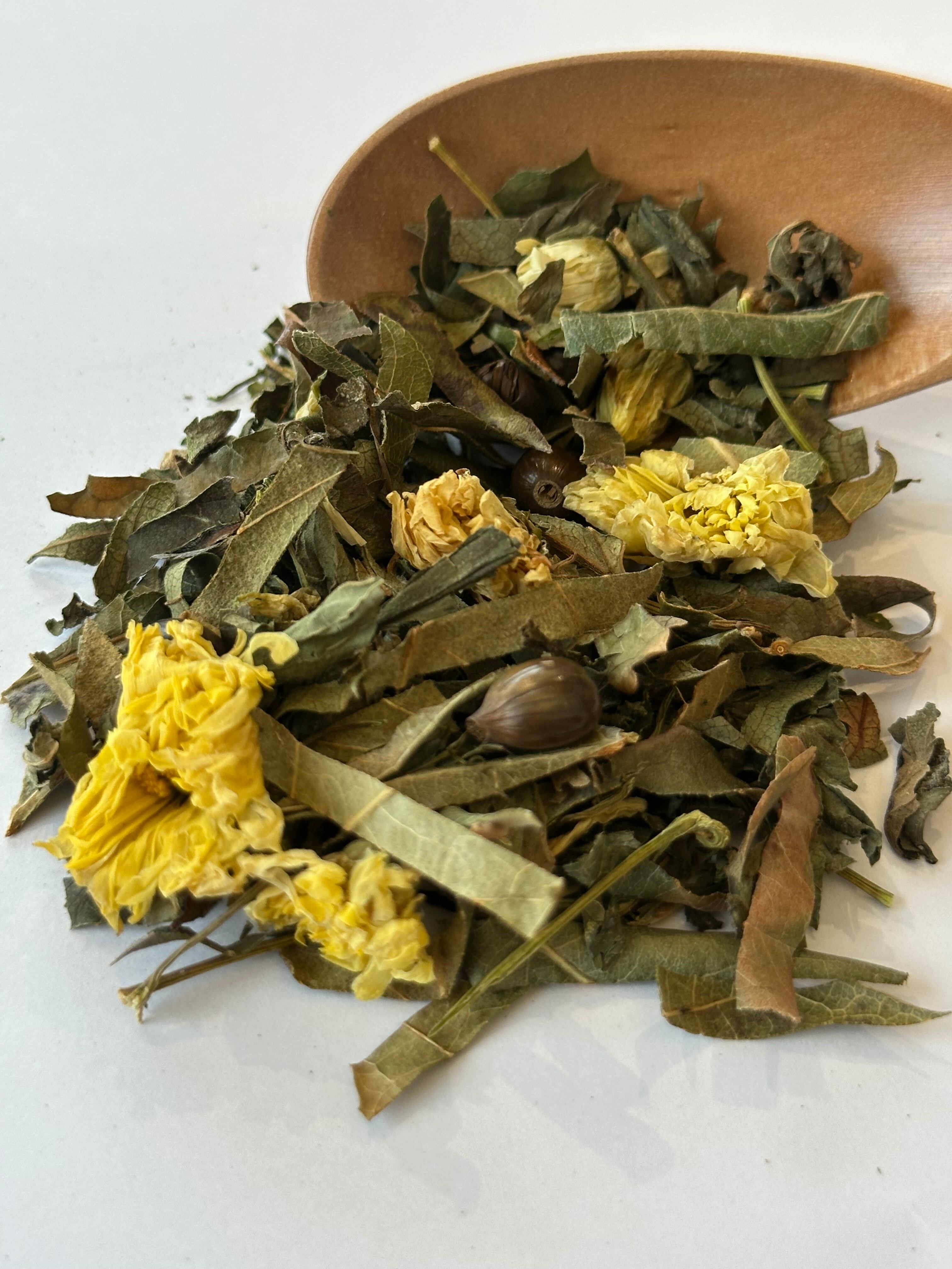 日常生活の中で感じるアレルギー症状や目の疲れを和らげ、心身ともにリフレッシュできる一杯をお届けします。薄荷のスッキリとした爽快感が特徴です。菊の花が美しく、あまちゃづるのほど良い苦みと風味で飲みやすく、特に目の疲れが気になり上半身に熱がこもりやすい方にぴったりの漢方茶です。